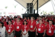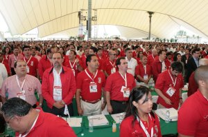 Aguascalientes, Aguascalientes.- Con la finalidad de contribuir a conformar un PRI capaz de enfrentar con éxito los distintos retos del momento social que vive la nación, la delegación veracruzana tricolor encabezada por su líder Fidel Herrera Beltrán y su dirigente en el Estado José Yunes Zorrilla, se sumó a los trabajos del partido desarrollados en la XX Asamblea Nacional en Aguascalientes, la cual contó con representantes de todo el país.