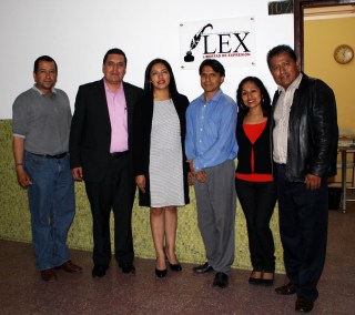 En la foto del recuerdo en el portal del 107 del edificio Nachita, sede de Periodistas Luchando por la Libertad de Expresión LEX A. C. de izquierda a derecha: Carlos Alaberto Villalobos Cortés, javiero Solís Rivera, Mayra Cortés Rodríguez, Carlos Morales Tapia, Rafaela de la Rosa Silverio y Esteban Mata Cano.