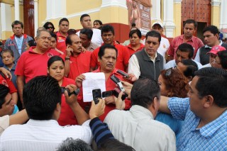 Poco más de cien agremiados de la FROSEV acompañaron a sus dirigentes al plantón que hicieran para dar a conocer la situación por la que atravesaron después que, tras la investigación que integrara un ministerio público con el número 327/2011 fuera girada por el juez primero de primera instancia Ariel César Robinson Manzanilla, una orden de aprehensión, por cierto, fue él mismo quien dictara el auto de libertad, por no haber elementos en contra de los líderes.