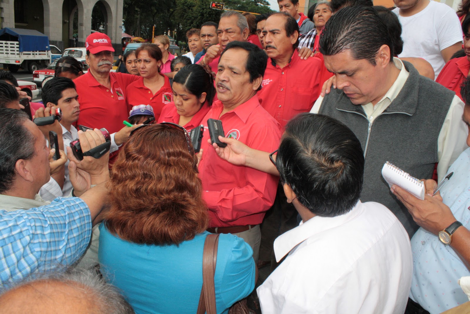 Poco más de cien agremiados de la FROSEV acompañaron a sus dirigentes al plantón que hicieran para dar a conocer la situación por la que atravesaron después que, tras la investigación que integrara un ministerio público con el número 327/2011 fuera girada por el juez primero de primera instancia Ariel César Robinson Manzanilla, una orden de aprehensión, por cierto, fue él mismo quien dictara el auto de libertad, por no haber elementos en contra de los líderes.