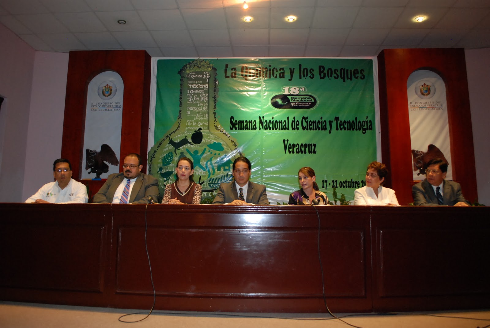 Los diputados Ricardo García Escalante, Paulina Muguira Marenco e Isela González Domínguez, presidente, secretaria y vocal de la Comisión Permanente de Ciencia y Tecnología de la LXII Legislatura Local; Rosa Enelva Vera Cruz y Armando Méndez de la Luz, durante la clausura de las actividades de la Semana de la Ciencia y Tecnología en Veracruz, realizada del 17 al 21 de octubre. Estuvieron presentes Heriberto Contreras Garibay, representante del Consejo Veracruzano de Ciencia y Tecnología (COVECYT); José Guillermo Ramos Moreno, representante del Colegio de Estudios Científicos y Tecnológicos del Estado de Veracruz (CECYTEV); así como investigadores, catedráticos, estudiantes, medios de comunicación y público en general.