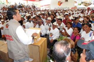 De igual forma se realizó la entrega de paquetes de láminas de zinc dentro del programa techo seguro y botiquines de primeros auxilios otorgados por la secretaría de Protección Civil, además de 500 árboles de cedro y roble por parte de SEDARPA, módulos de alfabetización por parte del IVEA, mobiliario para jardines de niños, primarias y secundarias por parte de la SEV, ampliación y cobertura total a través del Seguro Popular, pisos firmes para viviendas, apoyos para las madrinas obstétricas que buscan erradicar la muerte materna y equipamiento para la casa de salud.