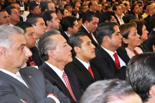 Dentro del marco del Primer Informe del Gobernador de Veracruz Javier Duarte de Ochoa, en primera fila escucha atentamente el Subsecretario de Gobierno Erick Lagos Hernández, le flaquean el Secretario del Medio Ambiente Víctor Joaquín Alvarado Martínez, la Secretaria de Protección Civil Noemí Guzmán Lagunes, la Secretaria de Turismo Leticia Perlasca y el Director del DIF Estatal, Juan Antonio Nemi Dib, entre otros funcionarios del gabinete Duartista, alcaldes de diferentes municipios del estado de Veracruz, así como de sectores y organizaciones políticas que se dieron cita a éste magno Primer Informe de actividades.