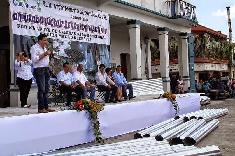 Cuitlahuac, Ver.- El trabajo de Serralde no tiene techo, los que sí lo tienen son los habitantes de Cuitláhuac, quienes se vieron beneficiados con la entrega de más de mil atados de láminas que les entregó su diputado federal.Víctor Serralde, presidente de la Comisión de Desarrollo Rural, sigue recorriendo su distrito haciendo obras, iluminando caminos y ayudando a quienes han sufrido por las inclemencias del clima quedando desamparados. En esta ocasión, más de doscientas familias fueron apoyadas luego de que una gran tormenta los dejara sin un hogar digno.