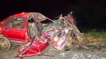 Tres Valles, Ver.- En un encontronazo arrojo dos personas del sexo masculino muertas y otro más resultó gravemente herido, se trata de un policía municipal activo que estaba fuera de servicio y un trabajador de limpia pública municipal, ambos adscritos al ayuntamiento municipal de Tres Valles los cuales se circulaban sobre la cartera federal 145 con rumbo al sur a bordo de un vehículo compacto de los llamados Tsuru.