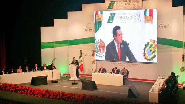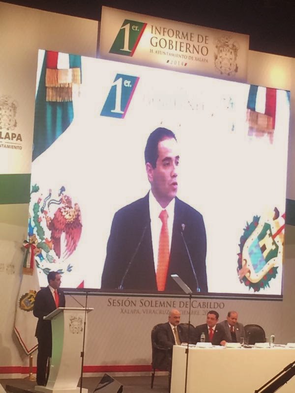 Con un teatro del Estado lleno y gente que le esperaba desde temprana hora, el edil, acompañado de los 13 regidores que conforman la comuna, llegaron acompañados del Secretario de Educación, adolfo Mota Hernández, representante del gobernador, Marco Antonio Lezama Moo, representante del poder Judicial y Ricardo Ahued Bardahuil, diputado local por el distrito de Xalapa Urbano y representante del H. Congreso del Estado de Veracruz, iniciaron la sesión extraordinaria de cabildo en la que se informó de los resultados obtenidos a lo largo del 2014 en obras y acciones para la capital de Veracruz.