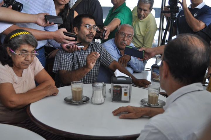 “No tenía el gusto de conocerlo, sólo lo había visto por los noticieros y todo éste tipo de cosas, que bueno que usted está aquí, pero sabe, lamentablemente está en una rueda de prensa, a lo mejor hubiera sido que nos hubiera buscado en otra situación”, exclamaron los pastores al admirar la presencia de Solalinde.