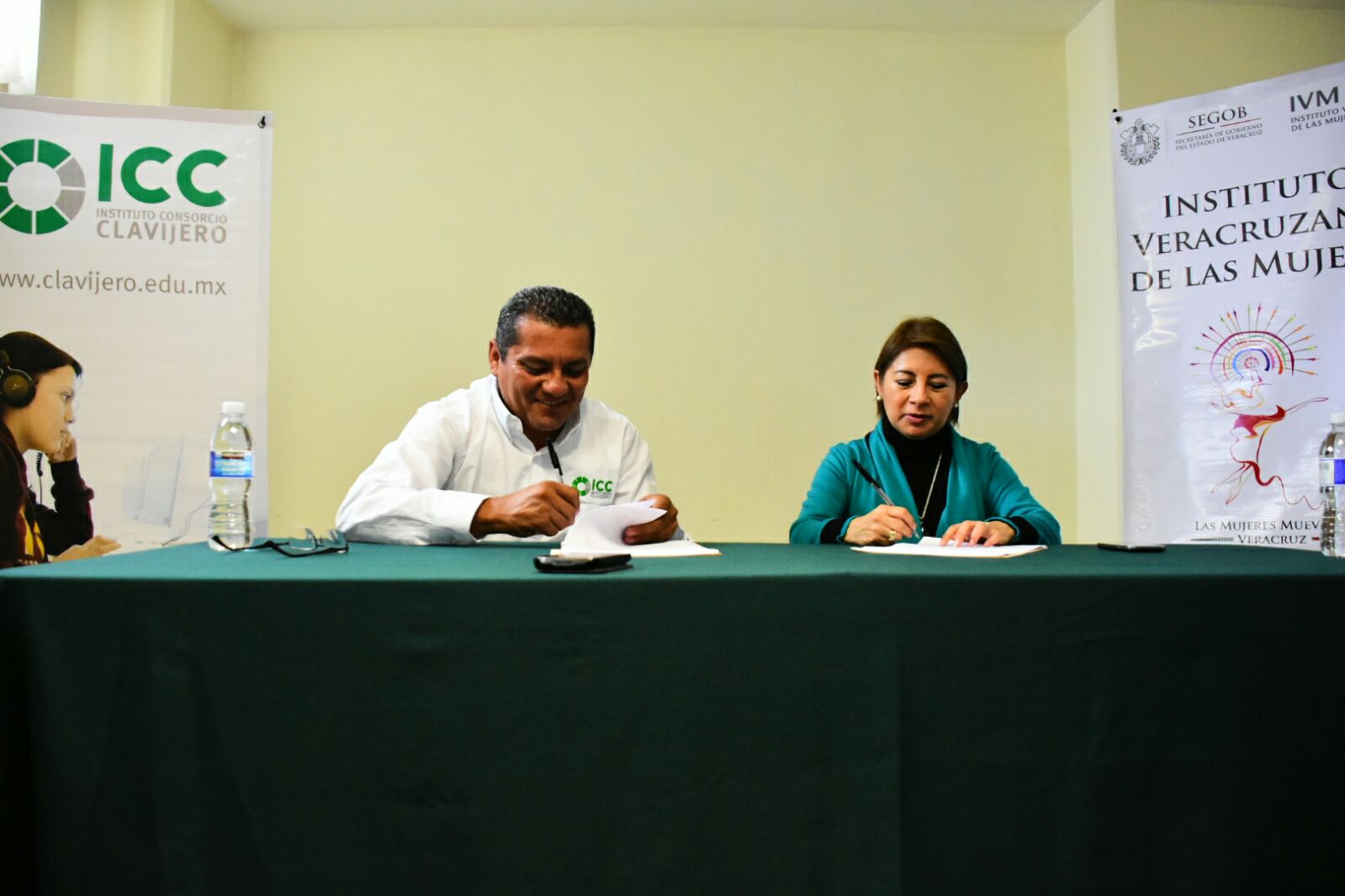 Xalapa, Ver.- Los directores generales de los institutos Veracruzano de las Mujeres (IVM) y Consorcio Clavijero (ICC), Edda Arrez Rebolledo y Ricardo Orozco Alor, respectivamente, firmaron un convenio de colaboración a fin de difundir las actividades que ambas dependencias realizan en beneficio de las mujeres de la entidad.