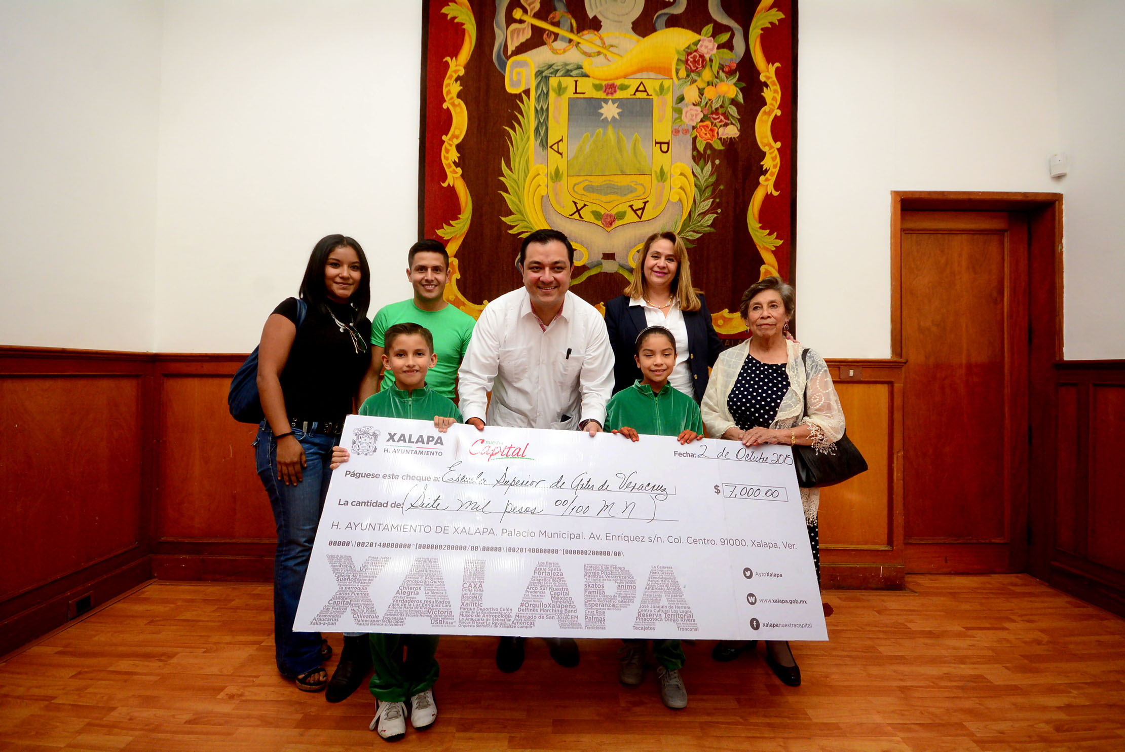 A nombre del pueblo y gobierno municipal, el alcalde Américo Zúñiga Martínez encabezó la entrega de estímulos económicos a jóvenes talentos y artistas de la ciudad, quienes representarán a la ciudad de Xalapa en distintos eventos nacionales e internacionales. El alcalde entregó un apoyo para viáticos por siete mil pesos a la pareja conformada por los niños de 9 años, Lyelcia Patricia García Martínez y Dylan Emmanuel Denis Martínez, quienes forman parte del taller de Danza Folclórica de la Escuela Superior de Artes de Veracruz, ESAV