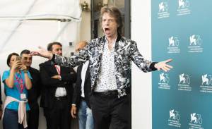 Mick Jagger, que clausura la Mostra de Venecia con su nueva película como actor, apoya a los activistas que hoy han ocupado la alfombra roja del festival
