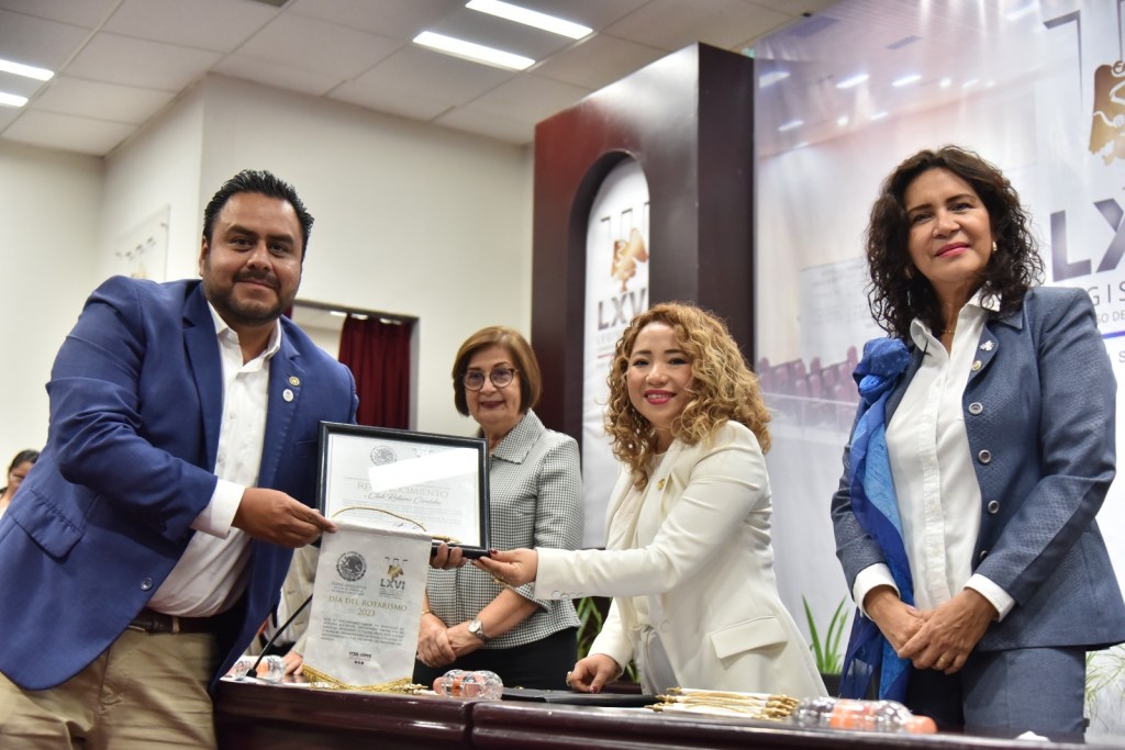 En el Día Estatal del Rotarismo, la presidenta de la Mesa Directiva de la LXVI Legislatura, diputada Margarita Corro Mendoza, expresó su reconocimiento al servicio voluntario y humanista que realizan los integrantes del Club Rotario de México y que tiene como finalidad mejorar las condiciones de vida de la sociedad y sus comunidades.