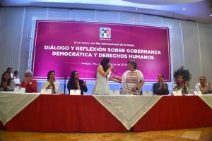 Durante su participación en: “Diálogo y Reflexión sobre la Gobernanza Democrática y Derechos Humanos”, convocado por el Comité Directivo Estatal del PRI, instó a las mujeres con responsabilidades públicas a tener claros los proyectos para cada municipio, Estado o legislatura, a que sean firmes, organizadas y no se den por vencidas.