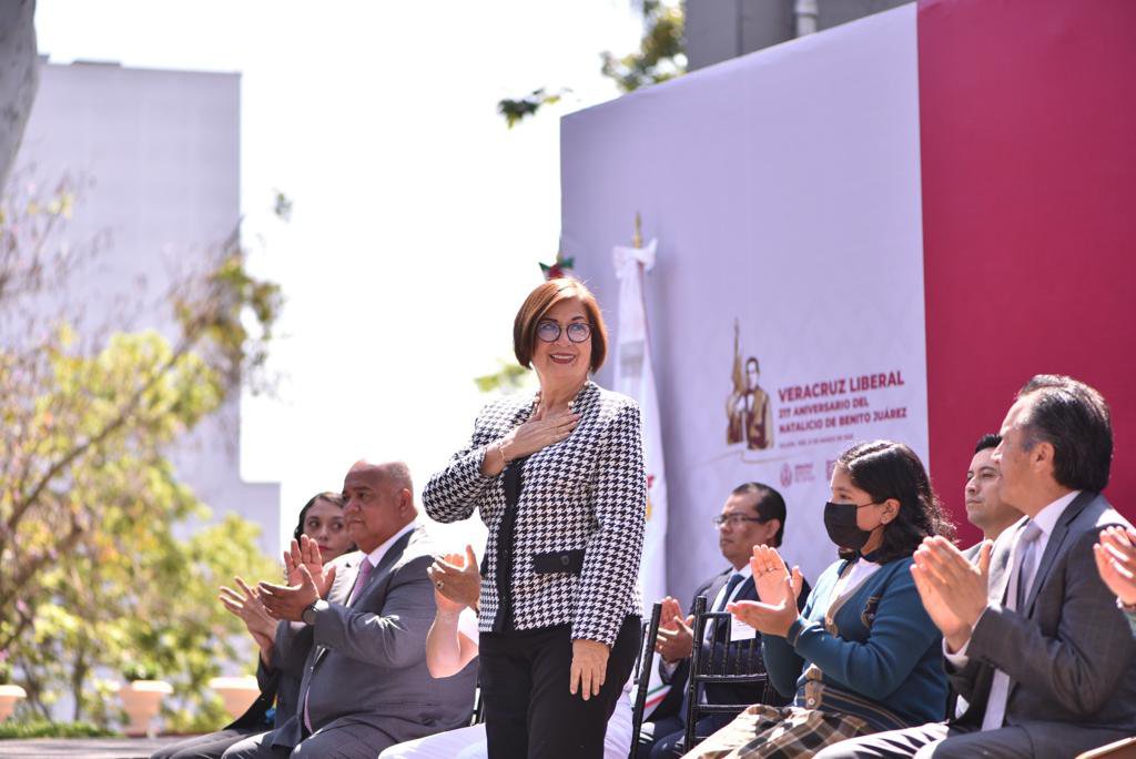 En representación de la LXVI Legislatura del Estado de Veracruz, la presidenta de la Mesa Directiva, diputada Margarita Corro Mendoza, y el presidente de la Junta de Coordinación Política (JuCoPo), diputado Juan Javier Gómez Cazarín, asistieron al acto cívico encabezado por el gobernador del Estado, ingeniero Cuitláhuac García Jiménez, con motivo del 217 aniversario del natalicio del Benemérito de las Américas, Benito Juárez García.