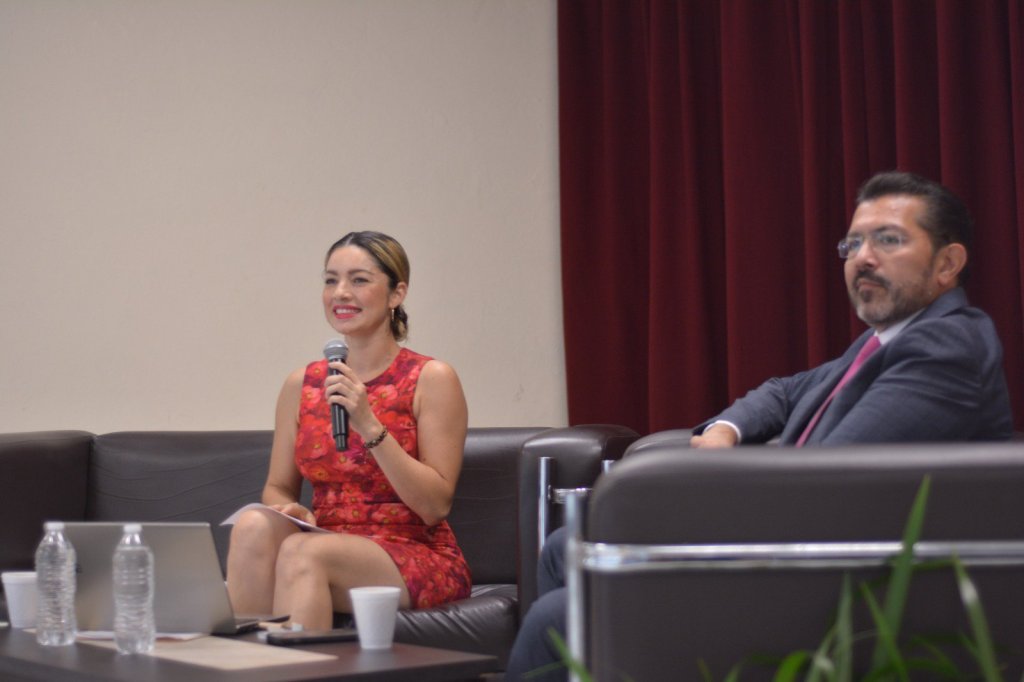 Asistieron al conversatorio la encargada del Instituto Veracruzano de las Mujeres (IVM), Rocío Villafuerte Martínez, y la encargada del Centro de Estudios para la Igualdad de Género y Derechos Humanos del Congreso del Estado (CEIGDH), Arhely Cuesta Briones.