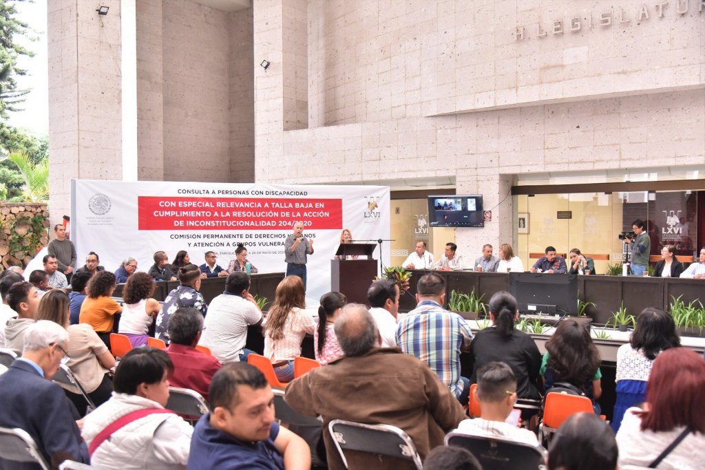 Con la participación de siete organizaciones de personas con discapacidad, incluidas Gente Pequeña o Talla Baja, la Comisión Permanente de Derechos Humanos y Atención a Grupos Vulnerables de este Congreso realizó la Consulta Pública sobre el Decreto 557 que reformó la Ley para la Integración de las Personas con Discapacidad del Estado, a fin de conocer propuestas e inquietudes de este sector social y en cumplimiento a la resolución de la Suprema Corte de Justicia de la Nación (SCJN) en la acción de inconstitucionalidad 204/2020.