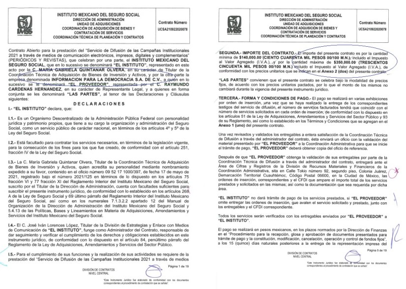 En 2021, el Instituto Mexicano del Seguro Social (IMSS) otorgó a la editorial hidrocálida un contrato (No. UCSA210922020078) con valor de 350 mil pesos, por el “servicio de difusión de las campañas interinstitucionales 2021 a través de medios de comunicación electrónicos, impresos y digitales”.