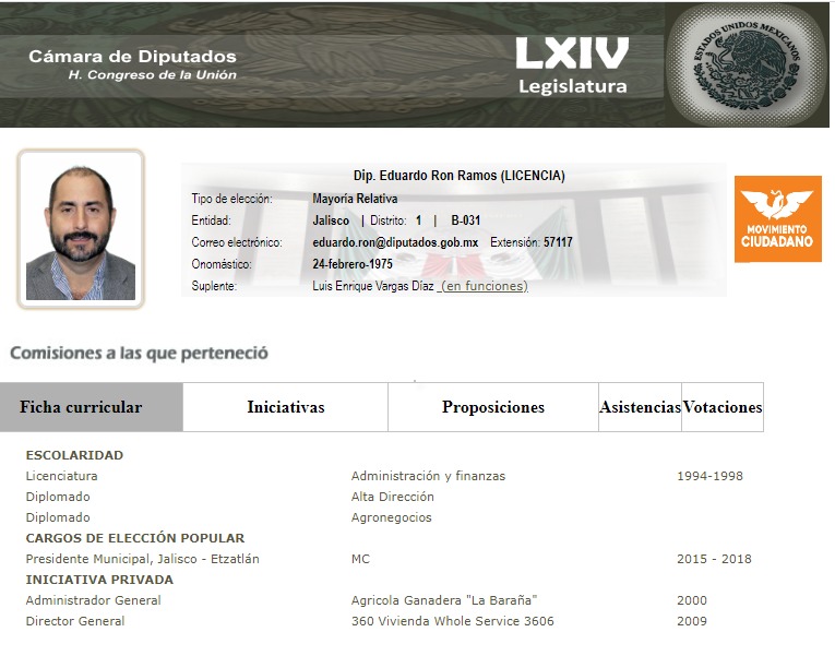 Ron Ramos pidió licencia en 2021. Es diputado local en Jalisco por MC.