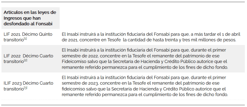 Existe la posibilidad de que se abra un fideicomiso similar en el IMSS-Bienestar. En el decreto[4] por el que se crea el organismo público descentralizado, denominado Servicios de Salud del Instituto Mexicano del Seguro Social para el Bienestar, se plantea la posibilidad de la creación de un fideicomiso para garantizar la solvencia presupuestal de la institución.