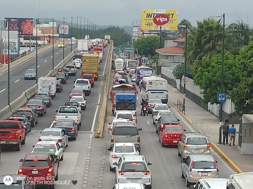 Al lugar del accidente arribaron elementos de tránsito y de seguridad pública para cerrar la vialidad lo que propició una larga fila que llegaba hasta Plaza Cristal.