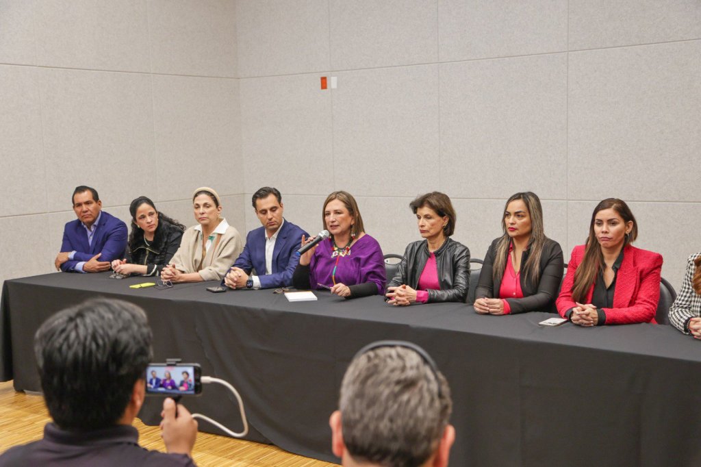 Moderadora: Gracias por acudir a esta convocatoria. Se encuentra con nosotros, Marcela Guerra, presidenta de la Cámara de Diputados, Silvia Elizondo, presidenta estatal del PRD Mayela Quiroga, secretaria general del PRI, aquí en el Estado, Alejandro Sada, secretaria general del PAN estatal se encuentra también con nosotros, Jesús Horacio González, así como Jesús Hurtado, xochilover, aquí en la entidad, los encabeza, la responsable del Frente Amplio por México, la senadora Xóchitl Gálvez Ruiz, quien ofrecerá unas palabras.