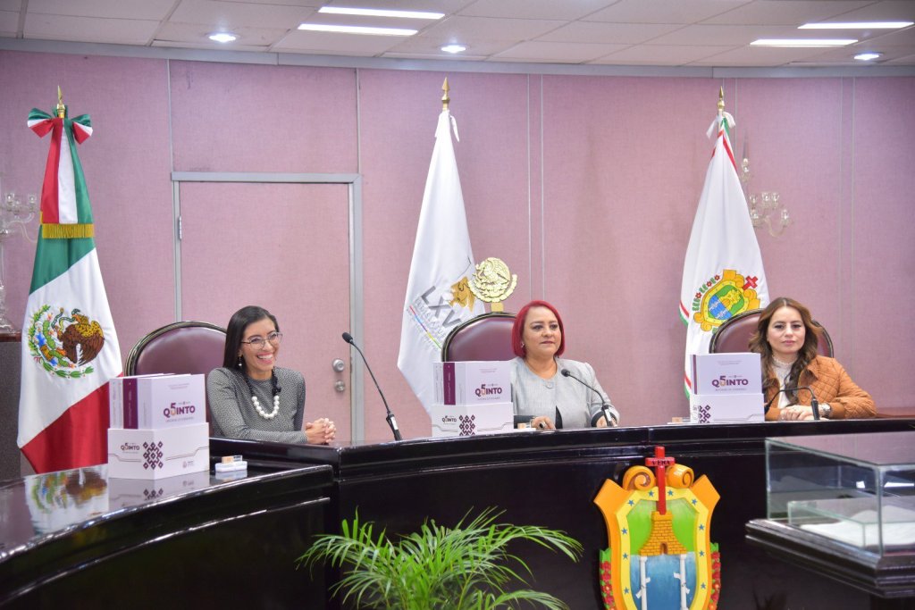En cumplimiento con lo dispuesto en el inciso d), fracción I, del Artículo 26 de la Constitución Política del Estado de Veracruz de Ignacio de la Llave, la presidenta de la Mesa Directiva de la LXVI Legislatura, diputada Adriana Esther Martínez Sánchez, recibió de la titular de la Oficina de Programa de Gobierno, Waltraud Martínez Olvera, el Quinto Informe de Gobierno de la administración que encabeza el ingeniero Cuitláhuac García Jiménez.