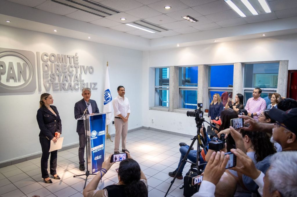 Xalapa, Ver., 24 de abril de 2024.- El presidente estatal del Comité Directivo Estatal del PAN en Veracruz, Federico Salomón Molina, anunció esta tarde la adhesión de la diputada Maribel Ramírez Topete a la bancada de Acción Nacional en el Congreso local.