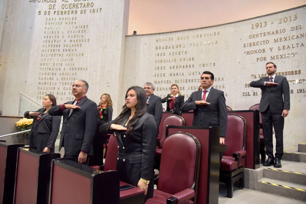 Previamente, la presidenta de la Mesa Directiva, diputada Tanya Carola Viveros Cházaro designó las comisiones de cortesía para recibir y acompañar al recinto a las personas titulares de los poderes públicos.