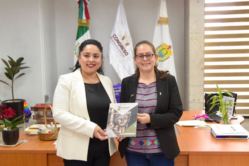 Posteriormente, la legisladora realizó lo conducente con la magistrada presidenta del Trijaev, Leticia Aguilar Jiménez, de acuerdo con la disposición constitucional de informar a la representación popular sobre las principales acciones realizadas durante el año.
