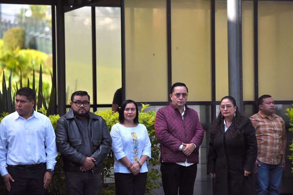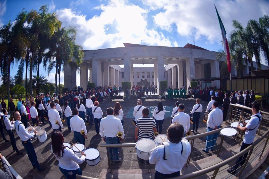 Previo al mensaje de la funcionaria, las y los asistentes realizaron los honores correspondientes y entonaron al unísono el Himno Nacional Mexicano, en el acto que contó con la participación de la banda de guerra y escolta del SUTSPL.