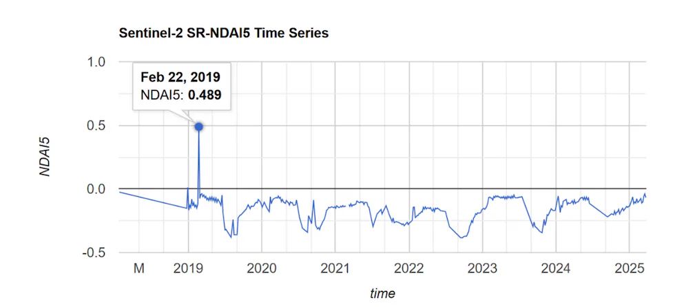 Serie temporal del NDAI5 en el rancho Izaguirre, a partir de la cual se detectó una anomalía del 22 de febrero de 201