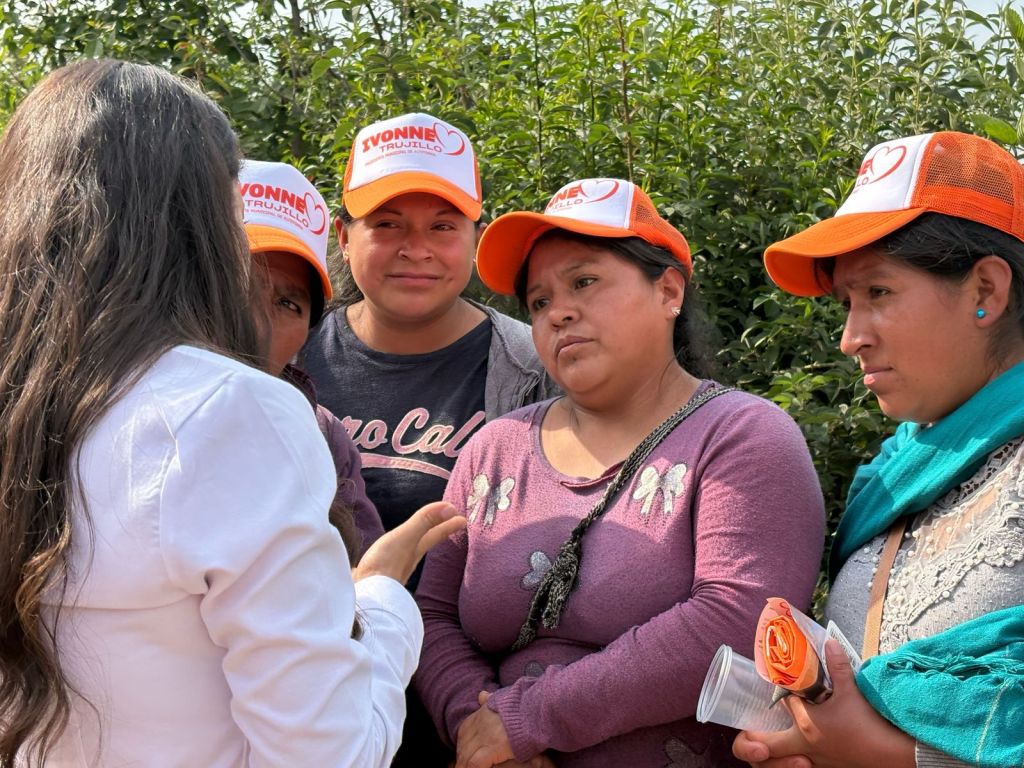 Acompañada por Isaías Flores Santillán, candidato a síndico y destacado productor local de truchas, café, pimienta y limón, Trujillo Ortiz propone un gobierno que escuche y atienda las necesidades de los campesinos.