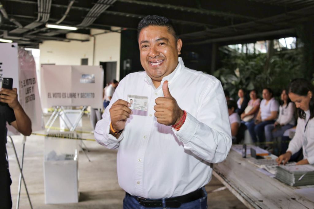 Acompañado por el dirigente estatal del partido, Luis Carbonell, y el diputado Paul Ospital, y su familia el aspirante emitió su voto en la casilla 2072, el aspirante subrayó la importancia de la participación ciudadana para consolidar la democracia local.
