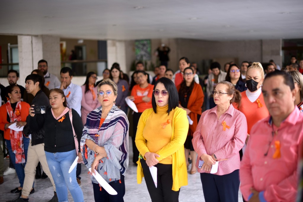 Por su parte, la secretaría de Fiscalización del Congreso local, Alma Leticia Patiño Gabriel, señaló que aún prevalece una deuda urgente e impostergable en materia de erradicación de la violencia contra las mujeres y las niñas, por lo que el Día Naranja es el recuerdo constante de una lucha global que exige compromiso, acción y resultados concretos.