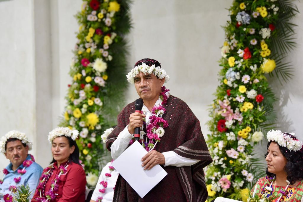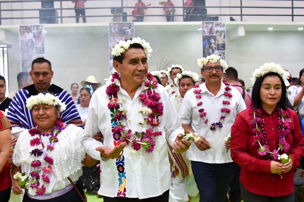 “Celebramos que en 2018 llegara a la presidencia el licenciado Andrés Manuel López Obrador, quien impulsó la reforma para garantizar los principios, derechos colectivos, autonomía y libre determinación de los pueblos, sentando las bases para una nueva relación respetuosa entre los pueblos y las instancias del Estado mexicano, hecho inédito e histórico para la Nación”