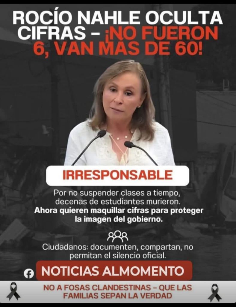El viernes pasado, cuando la zona norte de Veracruz colapsó por las graves inundaciones que afectaron a Poza Rica, Álamo Temapache, Tuxpan, El Higo e Ilamatlán, donde se reportan hasta 18 muertes y ya en las redes sociales se difundían videos de la población afectada que reportaba escenas dramáticas en ciudades y comunidades anegadas, incomunicadas y devastadas con el agua a casi dos metros de altura, la señora Nahle se aventó la puntada de declarar, eso sí con su ropa y sus zapatos secos porque no se había parado en la región que estaba en emergencia, que el desbordamiento de un río no había sido tan grave: “Bueno, ahorita en la mañana sí tenemos una situación, que se desbordó ligeramente el Río Cazones, se está atendiendo por parte de Protección Civil, tenemos algunas zonas anegadas”, declaró la mandataria cuando las imágenes que se difundían en redes contrastaban totalmente con su informe.